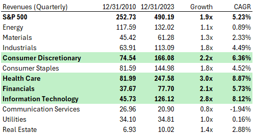 또한 놀랍게도 헬스케어는 지난 14년간 S&P500 섹터에서 가장 높은 매출 성장률을 기록했습니다.