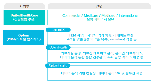 3. 옵텀 Rx(Optum Rx): PBM사업(약 배송, 의약품 정보조회, 약국 검색등)