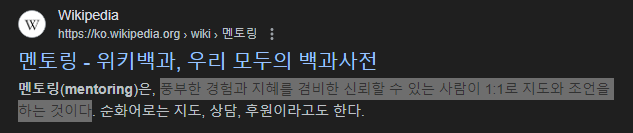 인터넷에 멘토링을 검색하면 위와 같은 뜻이 나옵니다.