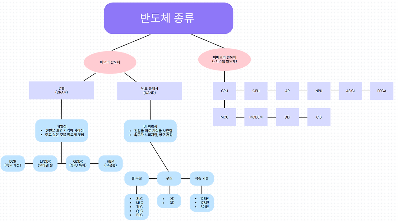 무언가를 깊게 파고들기 위해서는 전체적인 그림을 그리고 들어가야 합니다. 반도체를 알기 위해서 어떤 종류들이 있는지 정리해 보겠습니다.