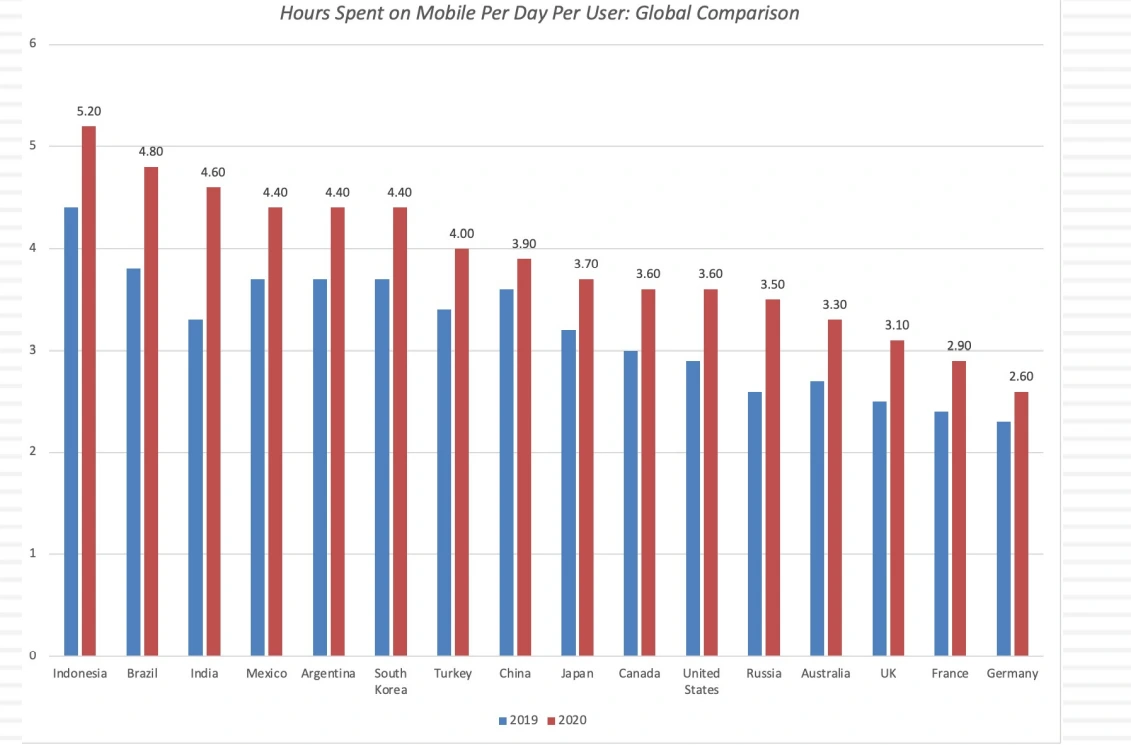 1. 전 세계 3위의 핸드폰 사용시간: 인도는 하루 평균 4.6시간으로 인도네시아, 브라질 다음으로 사용시간이 많다.