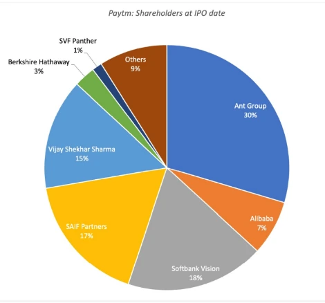 하지만 현재 중국 주주들(ant group, alibaba, saif partners)가 총 54%의 지분을 가지고 있으며, 일본의 소프트뱅크가 18% 그리고 창업자이며 CEO인 샤르마는 15%에 불과하다.