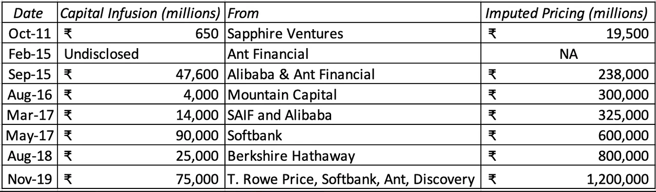 페이티엠의 야망적인 계획에는 엄청난 투자금이 필요하다. 여태까지, 이러한 계획을 수행할 수 있게 했던 것은, 주주들의 적극적인 투자 덕분이었다.