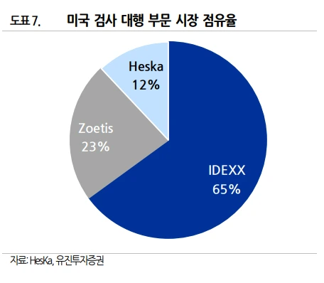 1. 진단검사기기 판매(POC): 병원과 개인 수의사들에게 판매, 현재 시장점유율 50%