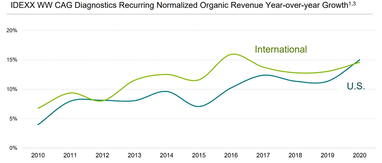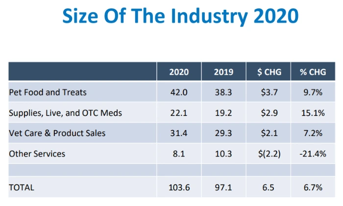 미국 반려동물협회(APPA)에서 발표한 자료에 따르면 2020년을 기준으로 미국의 반려동물시장규모는 1030억 달러(한화 약 1030조)이다. 그중 1위는 '사료 및 간식(420억달러)' 2위는 '의학 진료 및 관련 용품 판매(314억달러)'로 아이덱스는 바로 2위 시장에 속해 있다.