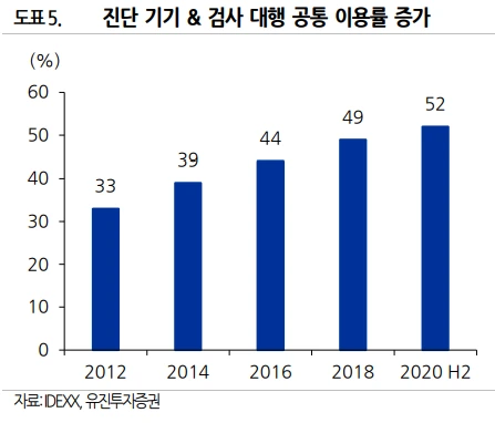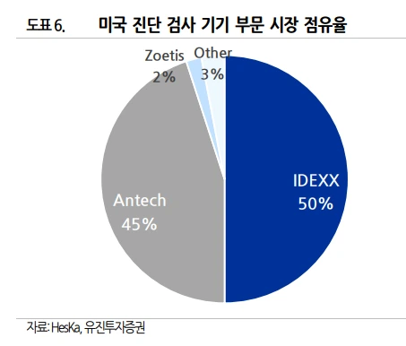 그리고 미국 진단시장의 총 R&D 지출액의 80%를 아이덱스가 투자하고 있으며, 이는 기술적인 진입장벽을 구축하려는 모습으로 보인다.