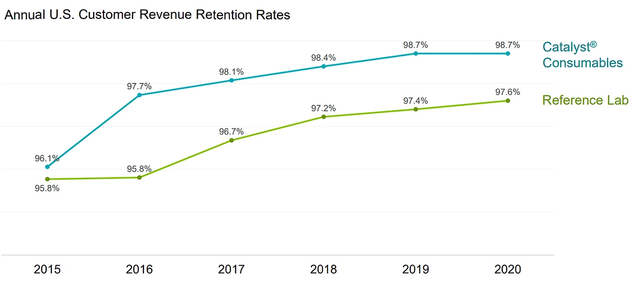 검사기기 시장은 기본적으로 다년간 계약을 체결하며 기존 회사를 잘 바꾸지 않는 경향이 있다. 이로 인해서 '락인 효과'가 생기며 반복적인 매출액을 창출한다.