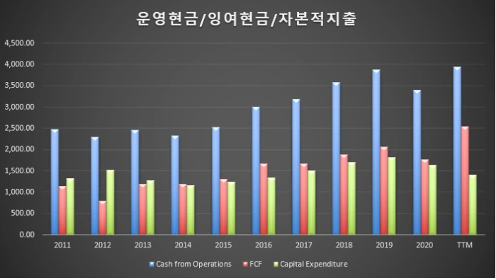 * FCF(잉여현금흐름): 영업활동 현금흐름 - 자본적 지출(재투자)