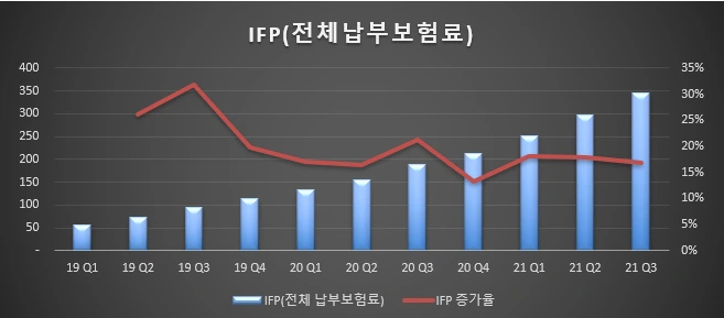 현재 '매출인식비율'은 40% 정도로 매출로 잡을 수 있는 금액 중 40%만을 실제 매출액으로 잡고 있는 상황인 것이다(재보험 지출 때문이다). 향후 현금흐름이 안정고, 규모의 경제를 달성하여 매출인식비율을 높일 수 있다면, 좋은 수익성을 기대할 수 있을 것이다.