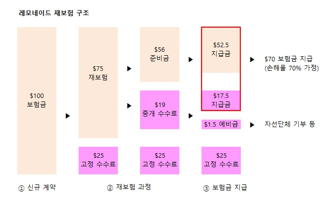 더하여 보험계약이 끝나는 시점에 남은 금액이 있다면, 고객은 자신이 원하는 자선단체에 기부를 할 수 있다. 본인의 이름으로 말이다. (*재보험: 보험사를 위한 보험이다. 자본이 적은 초기 보험사들은 큰 금액 지불능력이 떨어지기에 다른 보험사와 보험을 체결해 위험을 대폭 줄이는 것이다.)