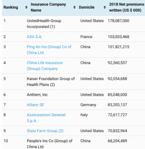 아래의 표는 2018년을 기준으로 전 세계에서 납부보험료가 가장 많은 10개의 기업들이다. 이들은 현재 시장에서 안정적인 위치를 차지하고 있다. 10개 기업의 평균 사업기간은 97년이다. 거의 100년 가까이 보험 하나로만 먹고살고 있는 것이다. 이만큼 보험시장은 꾸준하지만 변화를 싫어한다. 산업에 '혁신'이 적용된 적은 없었다.