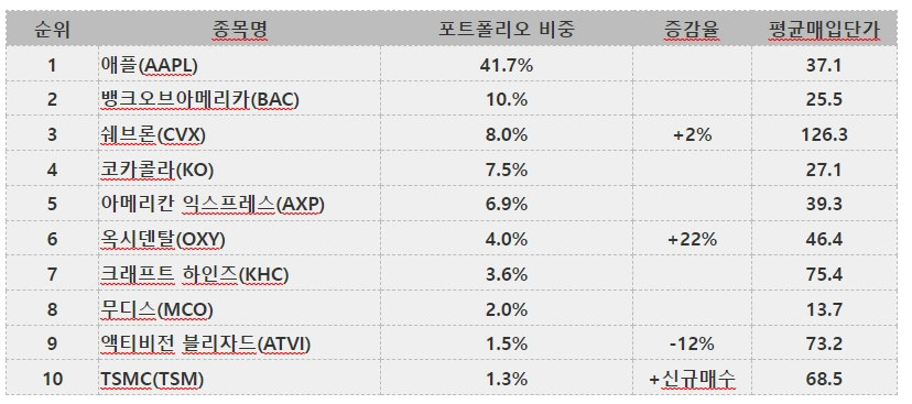 버크셔 해서웨이가 3분기에 주식에 투자한 금액의 무려 절반을 TSMC에 투자했습니다.