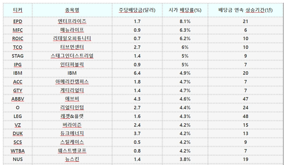 미국 대표 배당주 50개를 소개해드리겠습니다. 한번 보시고 포트폴리오에 추가하실 주식을 찾아보세요.