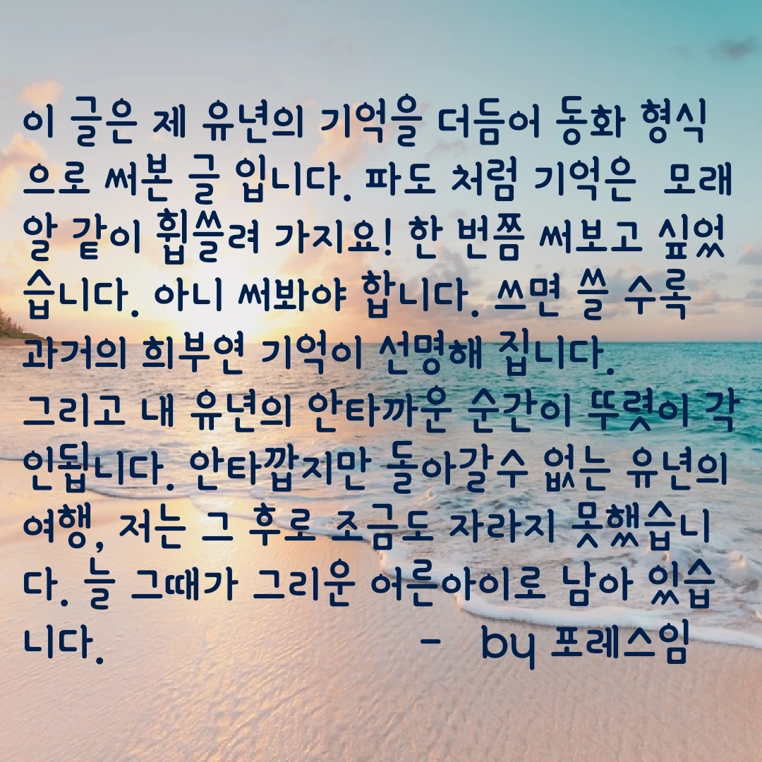 벌써 저녁때가 되었나 보다. 집에 가야 한다. 늦으면 또 혼난다. 불암산을 넘어온 태양은 이미 서쪽으로 지고 있었다.