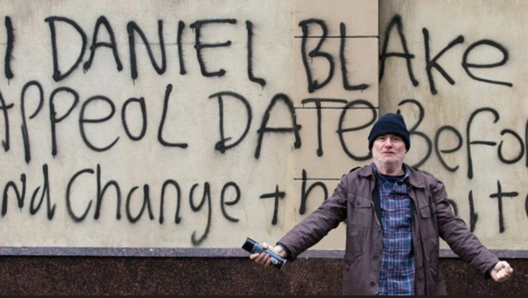 "나는 다니엘 블레이크, 개가 아니라 인간입니다. 이에 나는 내 권리를 요구합니다. 인간적 존중을 요구합니다. 나, 다니엘 블레이크는 한 사람의 시민 그 이상도 그 이하도 아닙니다."