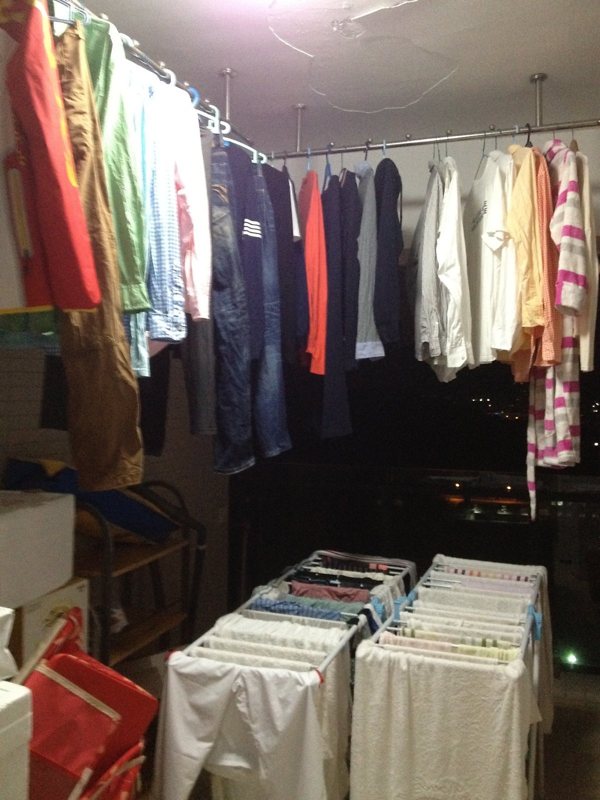 우리 세 명 다 그 날 입은 옷은 무조건 그날 빨았다.(깔끔한 남좌~) 그렇다면 적어도 티셔츠, 바지, 각자의 속옷과 양말만 해도 12벌이다. 거기에 아침, 저녁으로 샤워를 하니 수건도 6장이다. 그런데 세탁기는 조그만한 것이었다. 이러니 하루에 두번은 빨래를 돌려야 했다. 만약 셋이서 출장이라도 같이 갔다 온 날이면 빨래양이 정말 어마어마했다.