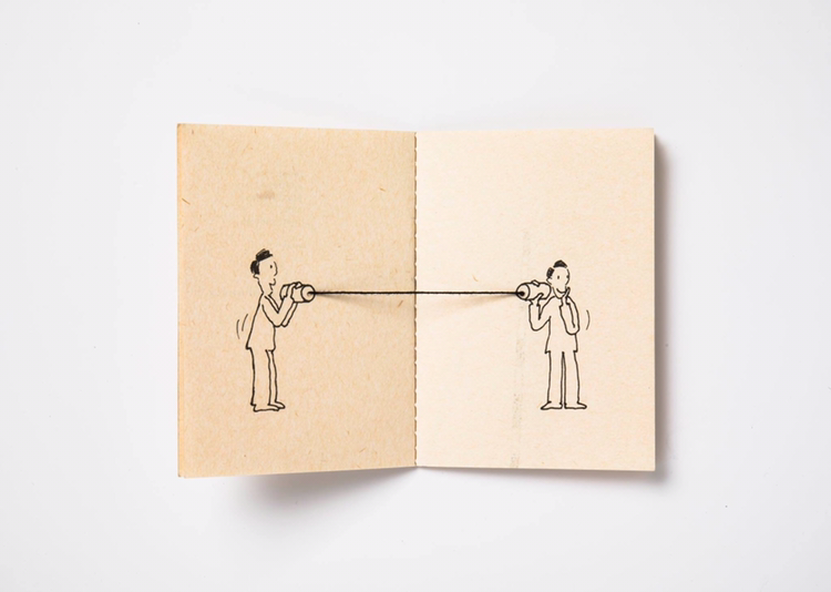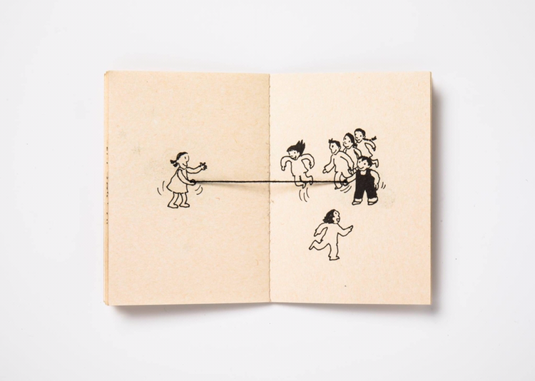 1세대 차정인 작가의 <실 한가닥>이라는 책은 소통에 관한 세상에 관한 이야기를 들려준다. 실 한가닥이 이어지면서 끝까지 풀어내는 이야기 방식이다. 제본 방법도 실 한가닥이고 채색되어 있지 않은 방식이 독특한 재미를 선사한다. 판형도 손바닥만 한 엽서 사이즈로 읽기 딱 좋다. 편안한 방식으로 독자에게 친근하게 다가가는 매력이 신선하다. (국내 북아트라는 장르를 소개한 작가를 가리켜 1세대라 칭한다.)
