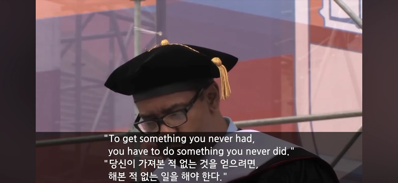 이후 다른 연설도 찾아보았는데, 말하는 내내 흡입력이 있어서 쭉 빠져들게 됐고, 마음에 와닿는 문장들을 하나씩 캡처해 두었다. 그리고 오늘, 나는 그 캡처한 장면들을 다시 꺼내 들여다보며 조용히 고개를 끄덕인다.