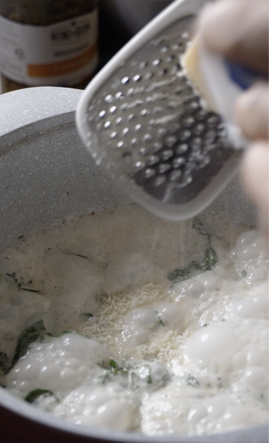 파마산 치즈를 넣어 맛을 더 진하고 풍부하게 만들어줍니다.