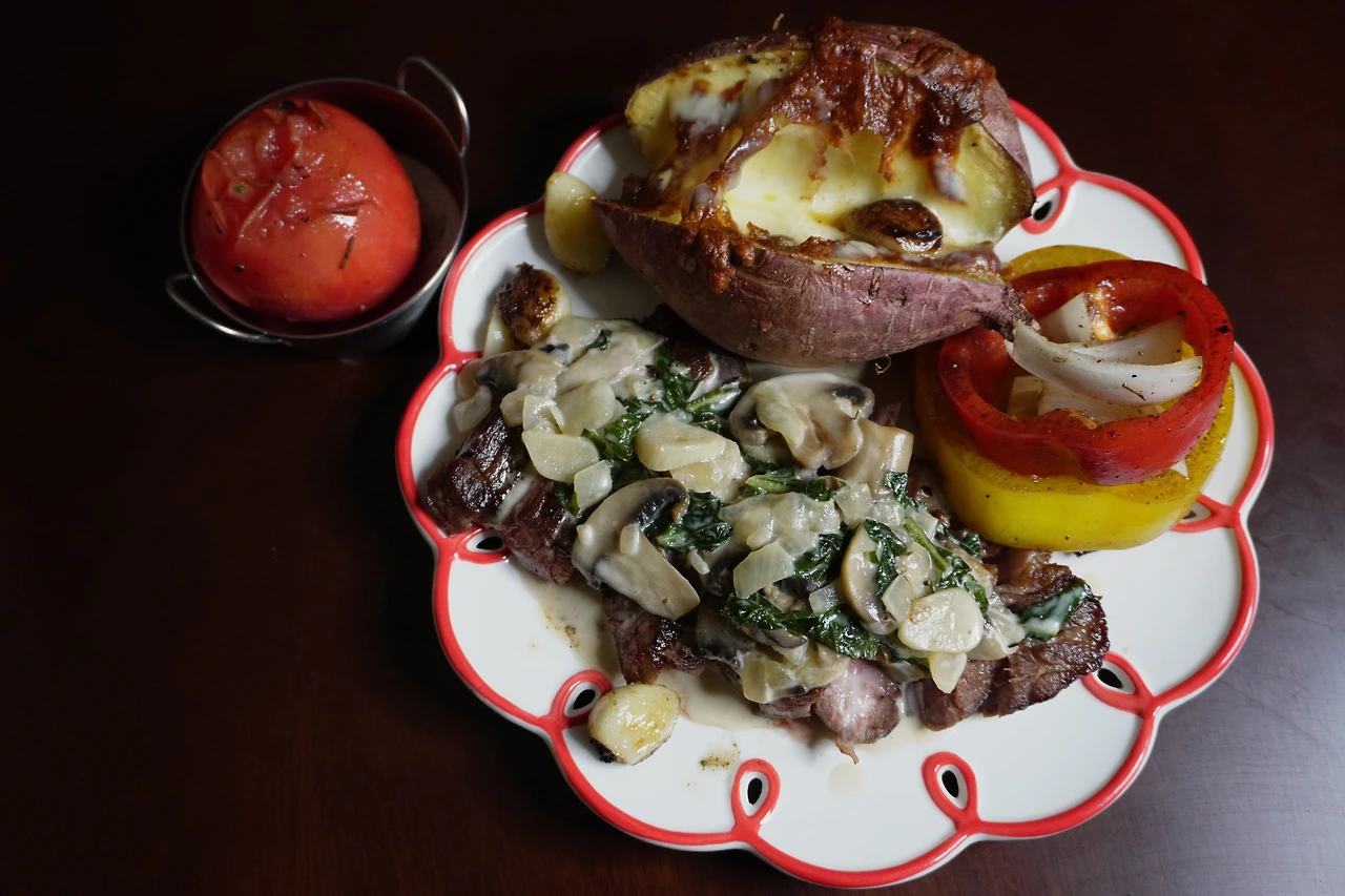 부드러운 크림소스에 향긋한 깻잎과 버섯이 어우러져 스테이크와 찰떡궁합을 이룹니다. 스테이크만 먹기 살짝 심심할 때, 꼭 한 번 곁들여 보세요!