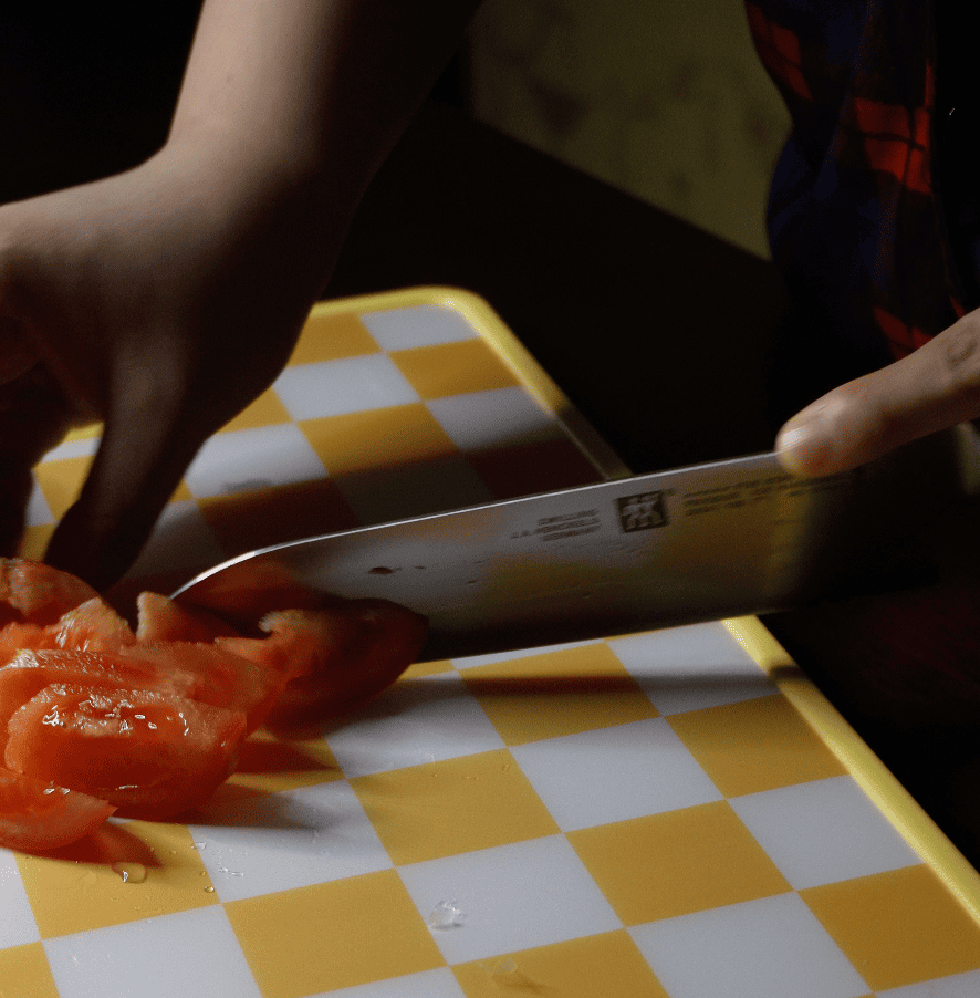 양파는 잘게 다져주시고, 토마토는 식감이 살아 있도록 한 입 크기로 썰어주세요.