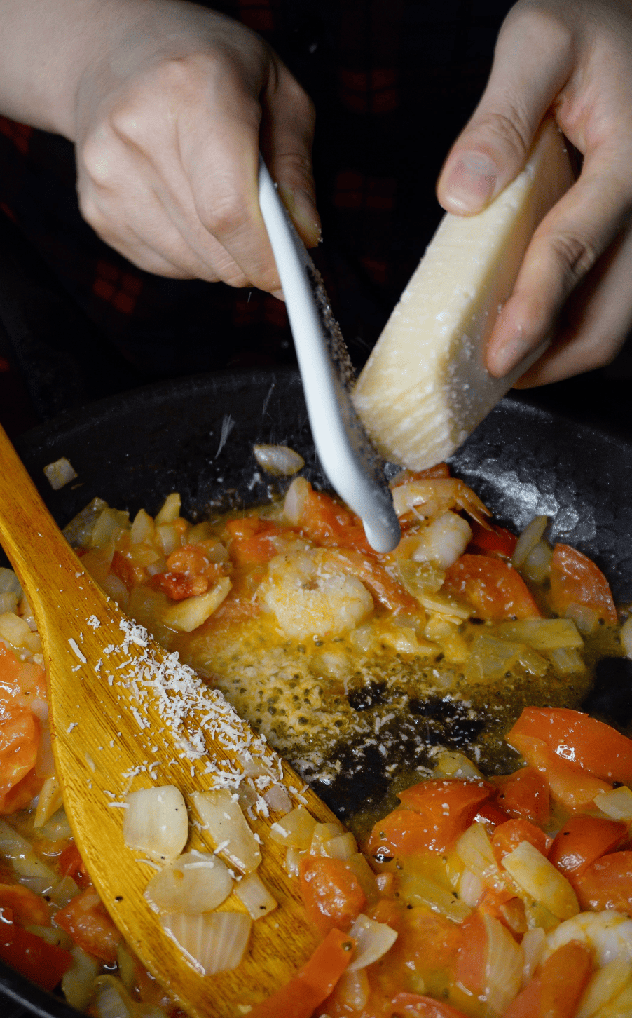 그라나 파다노 치즈를 넣어 풍미를 올려줍니다. (없으면 생략 가능하지만.. 넣는 걸 추천드려요!)