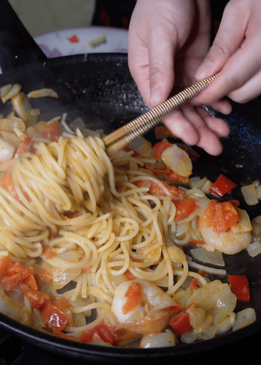 화구가 두 개라면, 면을 삶는 동시에 소스 조리를 시작해 주셔도 괜찮아요. 시간을 효율적으로 쓸 수 있어서 좋아요.