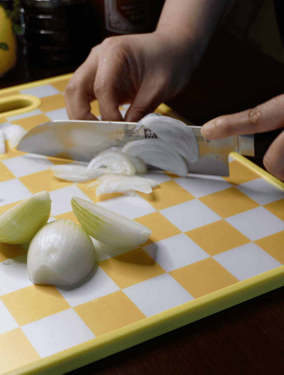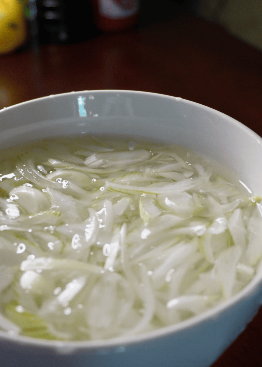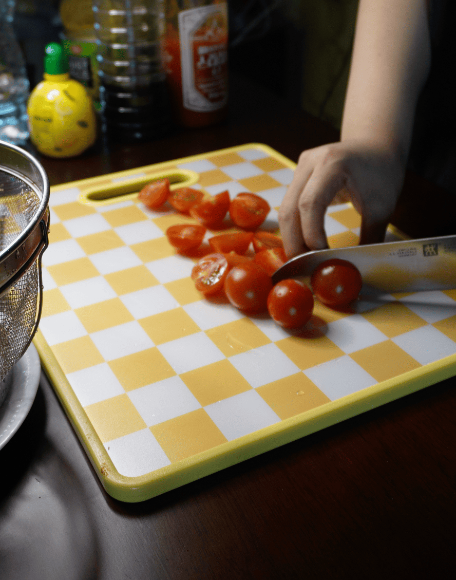 방울토마토는 반으로, 양파는 얇게 채 썰어 찬물에 담가 매운맛을 빼줍니다.