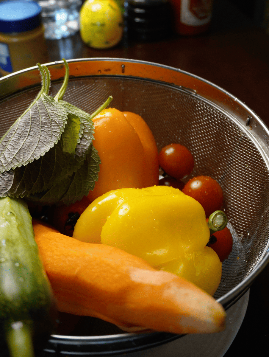 파프리카, 당근, 오이, 양파, 방울토마토, 깻잎