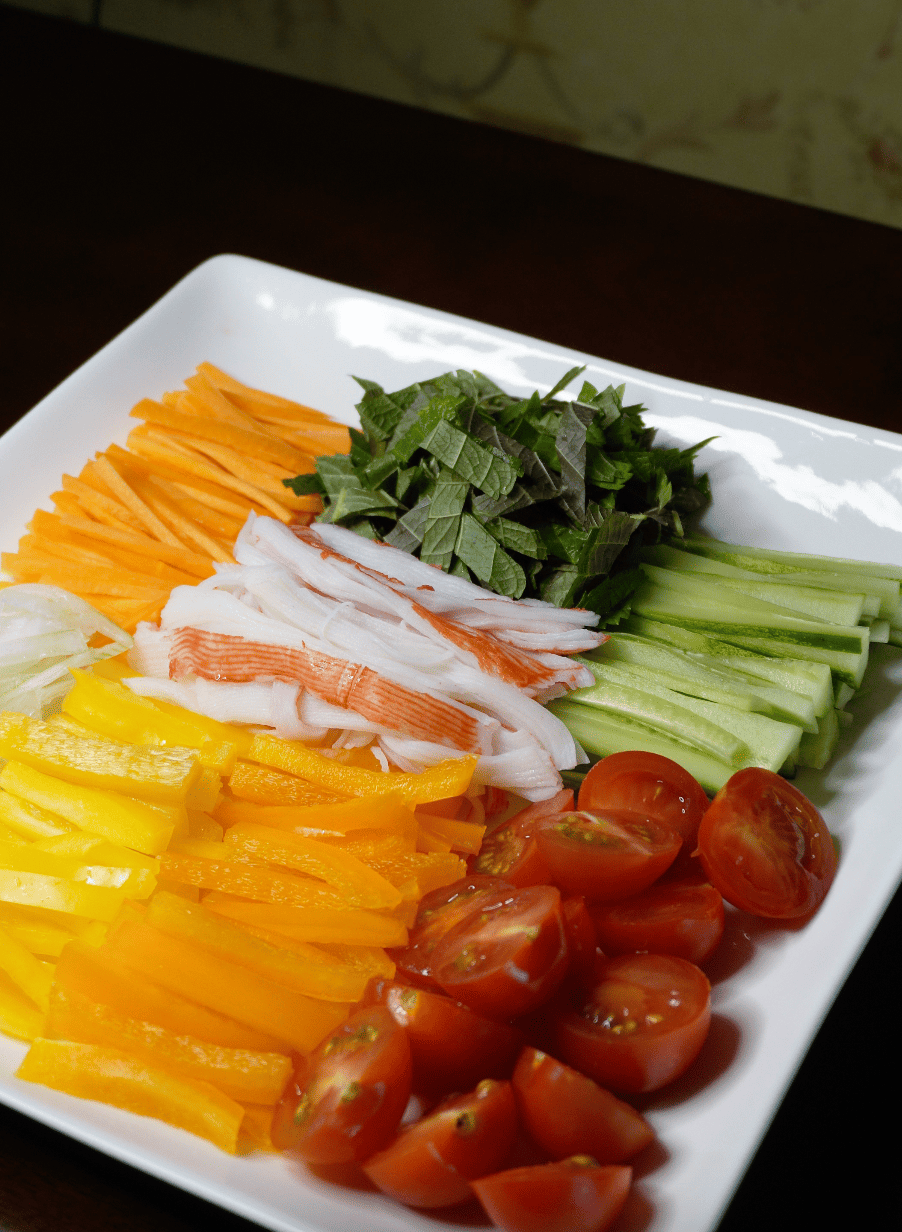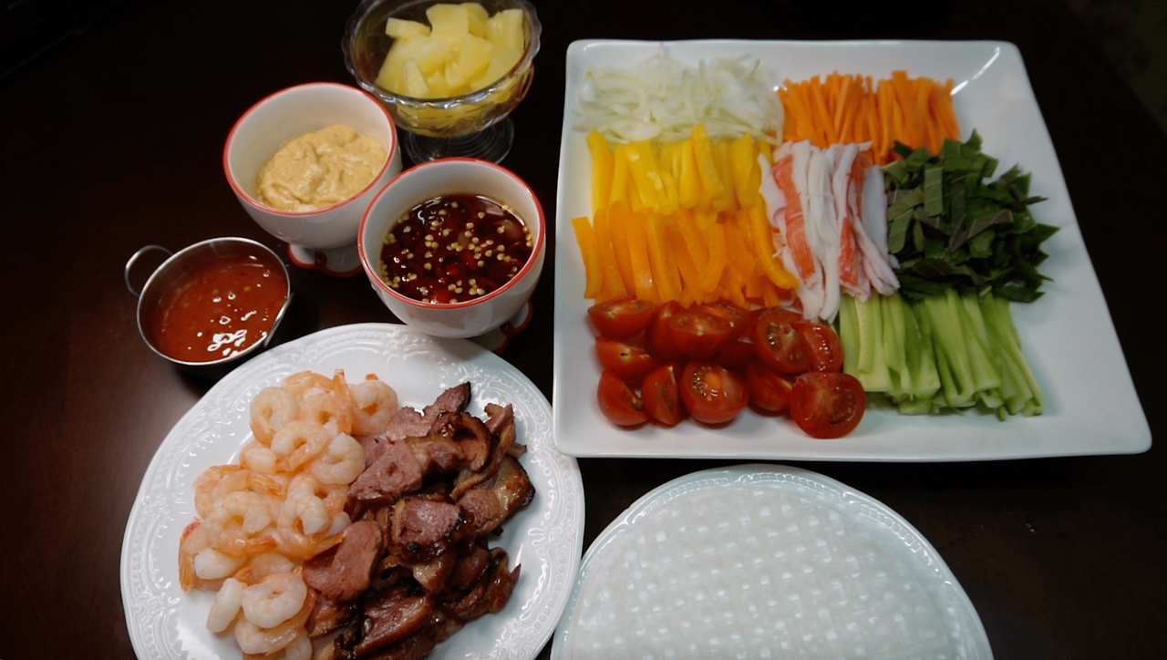 새우, 훈제오리고기, 크래미, 파인애플 통조림, 라이스페이퍼