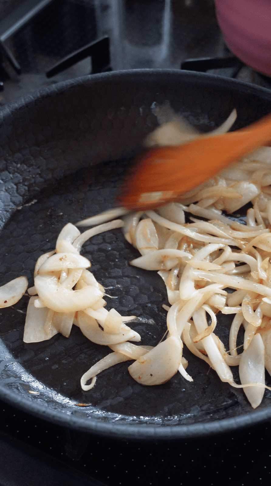 저는 양파의 아삭한 식감을 좋아해서 중간쯤에서 멈췄는데요, 더 푹 익히면 단맛이 훨씬 깊어져요.