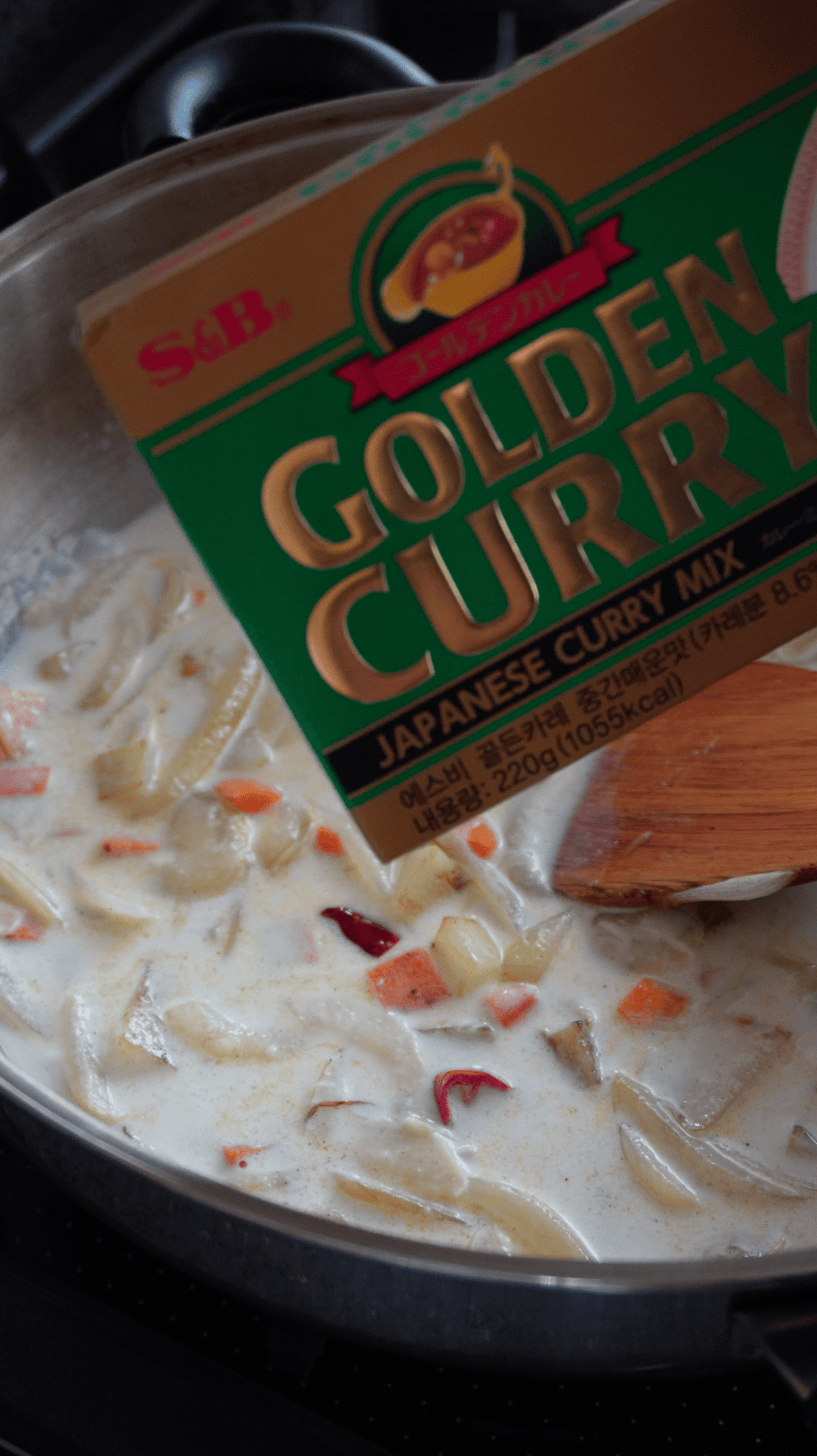 마지막으로 고형 카레를 넣고 잘 풀어 끓여주세요. 저는 일본 골든 커리(Golden Curry)-중간맛으로 만들었습니다.