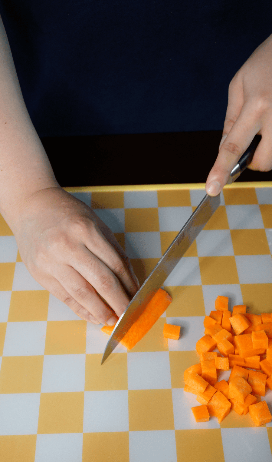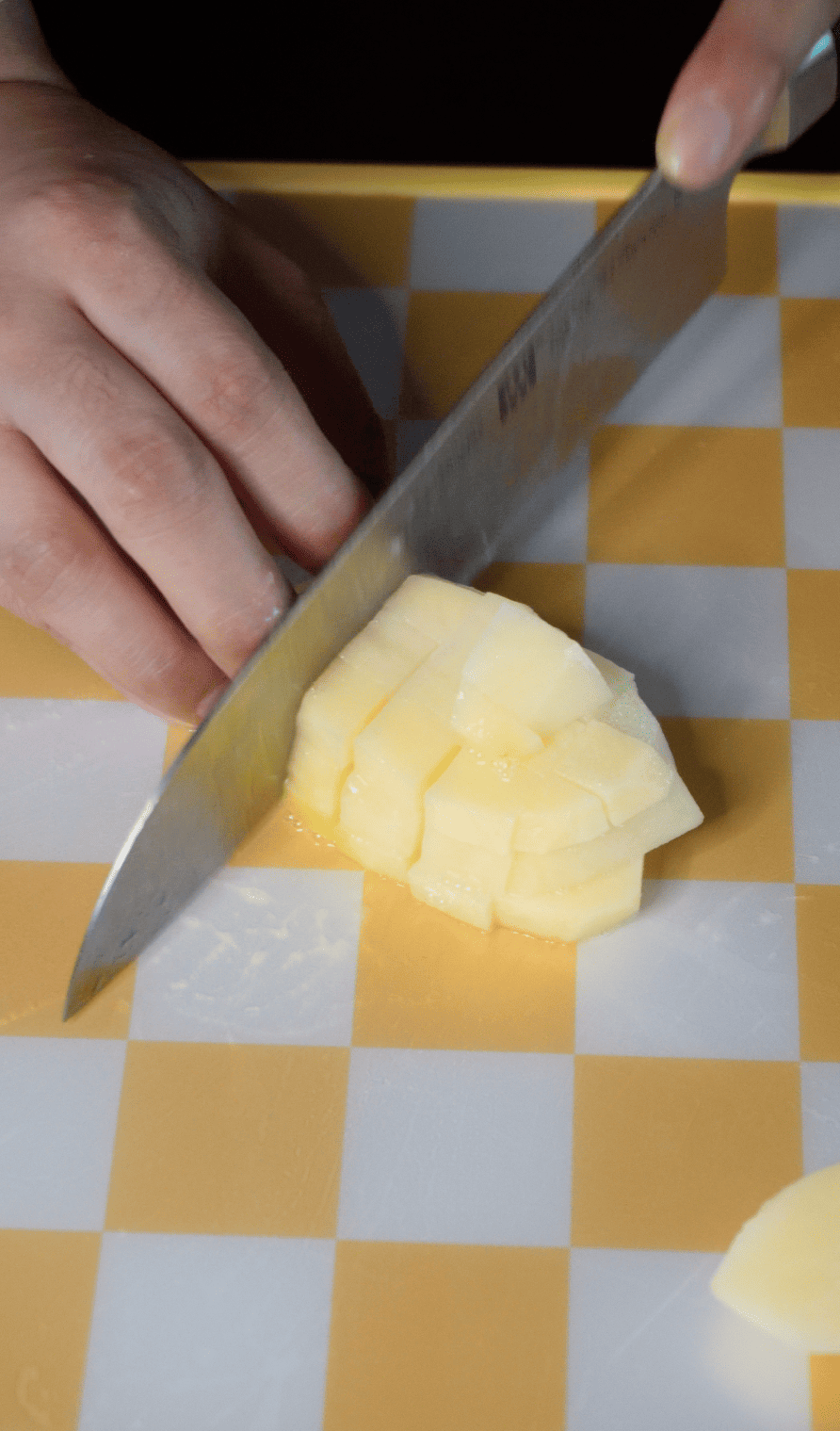 감자와 당근은 작은 크기로 깍둑썰기해 주세요.