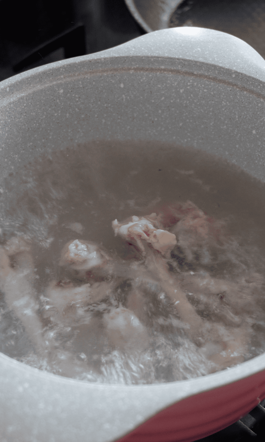 먼저 끓는 물에 한 번 데쳐 불순물과 이물질을 제거해 주세요. 찬물에 헹군 뒤, 다시 끓는 물에 넣고 15~ 20분 정도 약불로 끓여 육수를 만듭니다.