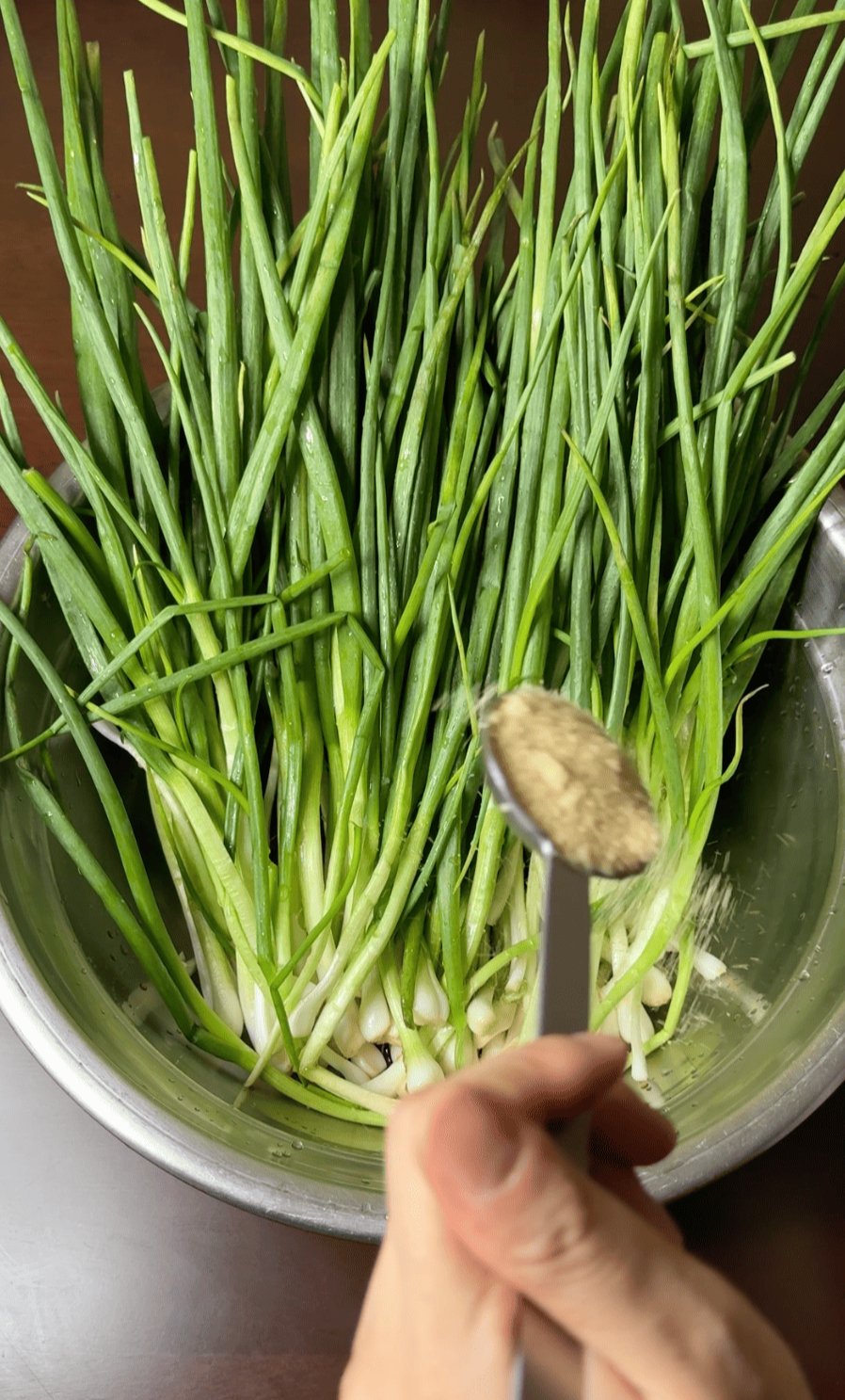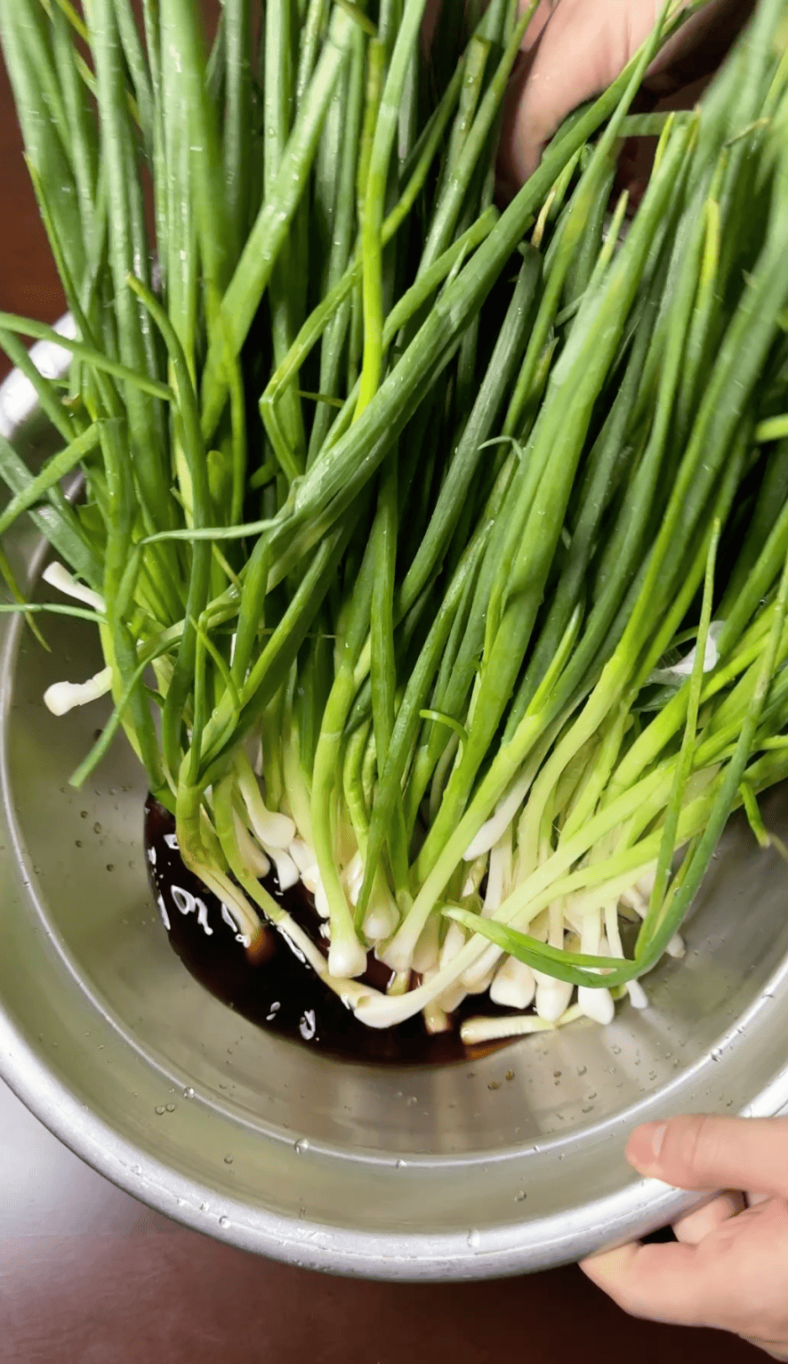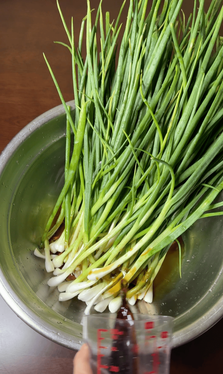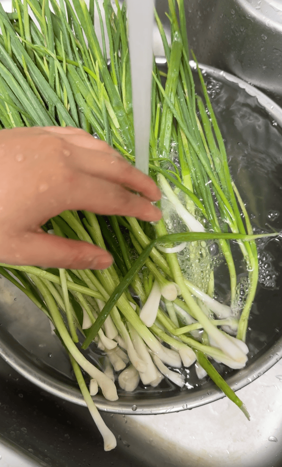 깨끗하게 다듬은 쪽파는 찬물에 한 번 헹궈둡니다.
