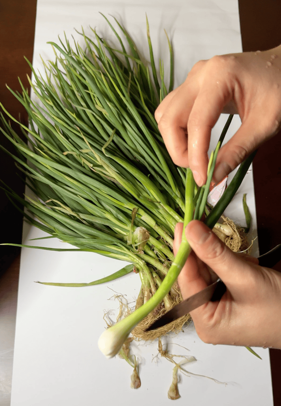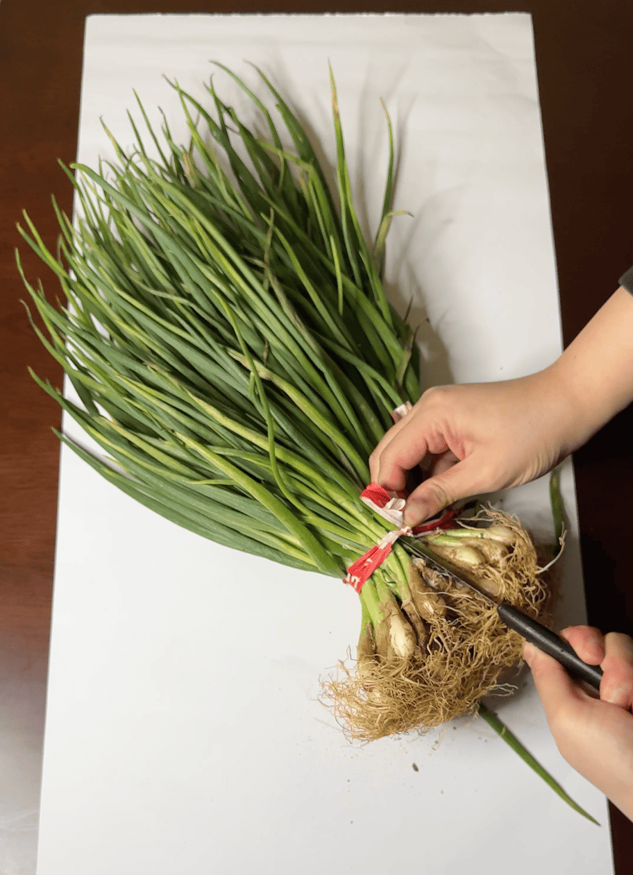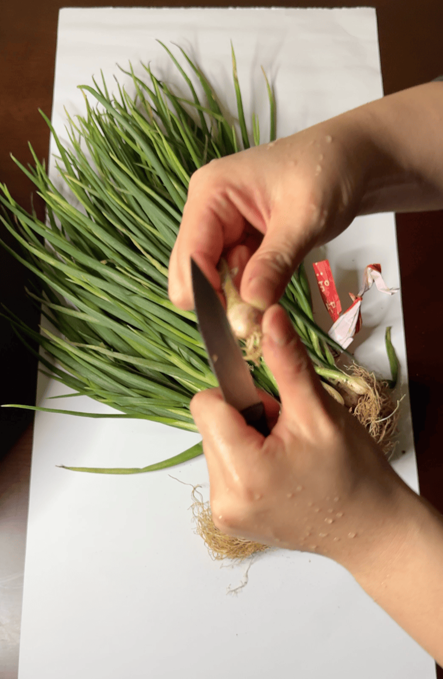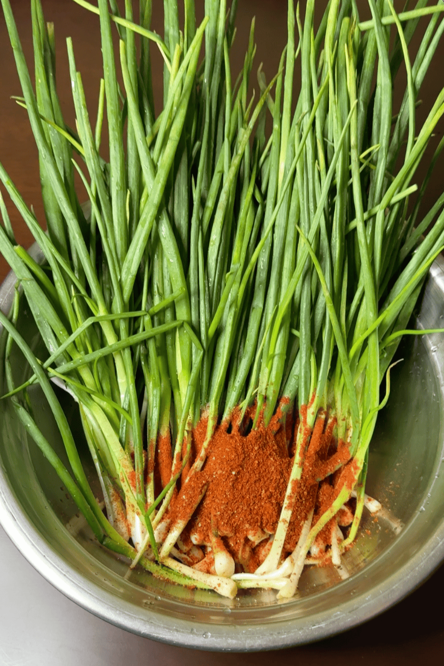 깨끗하게 다듬은 쪽파는 찬물에 한 번 헹궈둡니다.