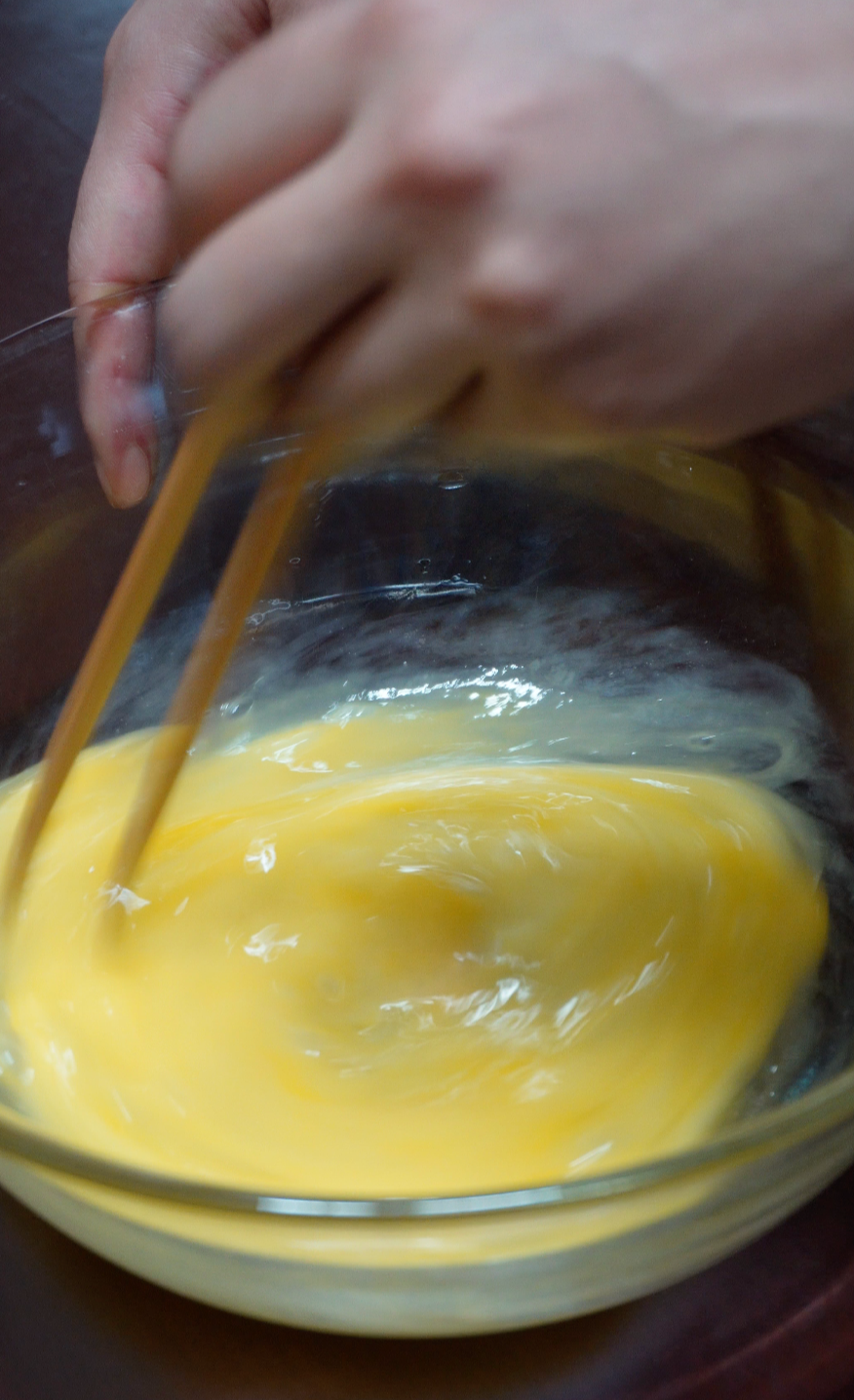소금·설탕·우유를 넣어 계란물을 만듭니다.