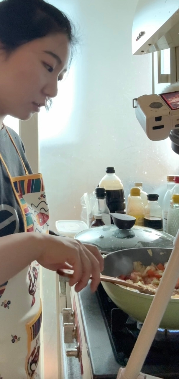 채소가 60% 정도 익으면 토마토를 넣고 함께 볶습니다.