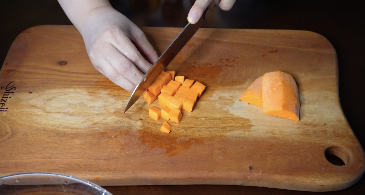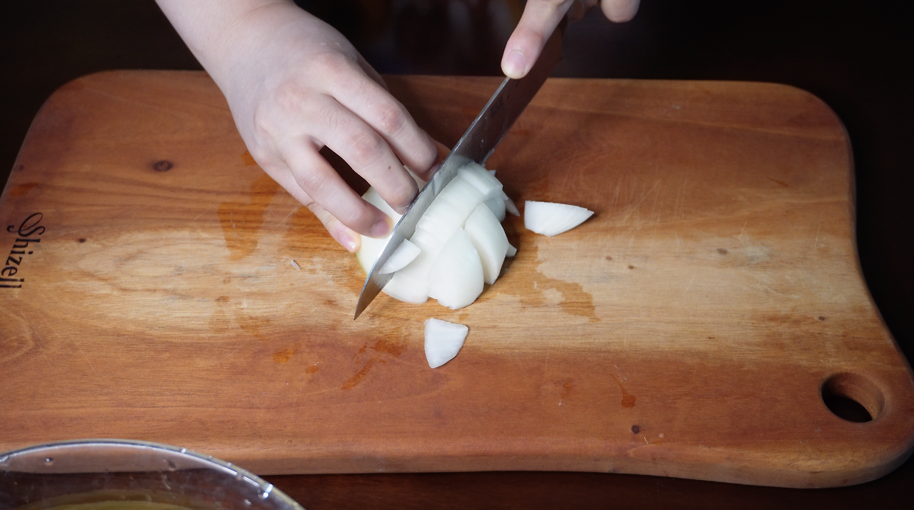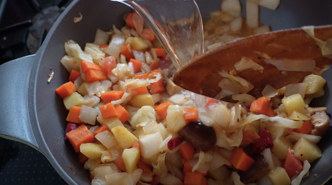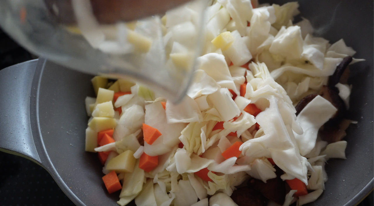 감자, 양파, 당근, 양배추, 버섯, 토마토를 비슷한 크기의 깍둑썰기로 준비해 주세요.