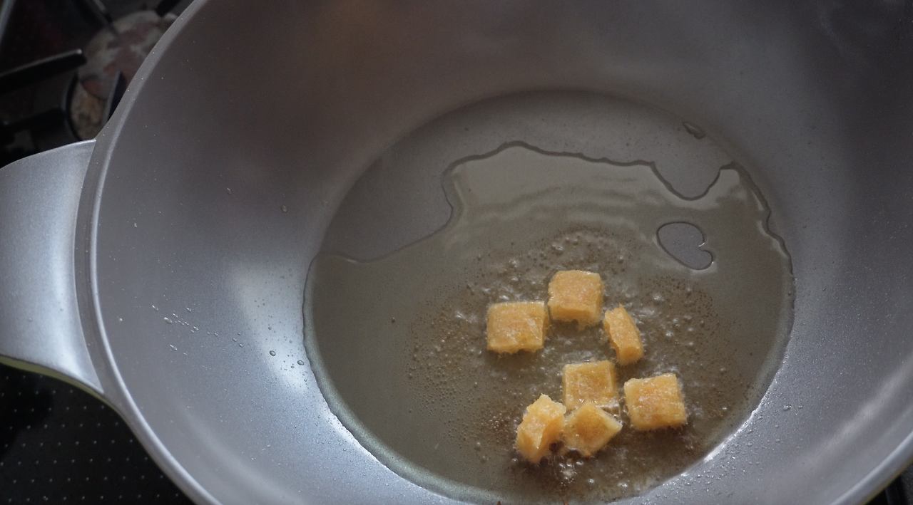 토핑용 새우는 따로 팬에 버터를 두르고 앞뒤로 살짝 구워줄게요.