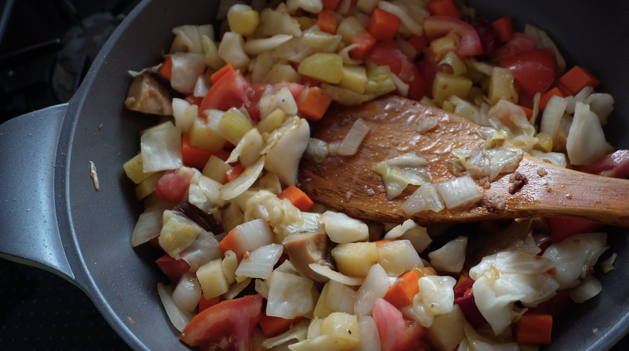 여기에 야채를 넣으면 더 건강한 요리가 됩니다 :-}