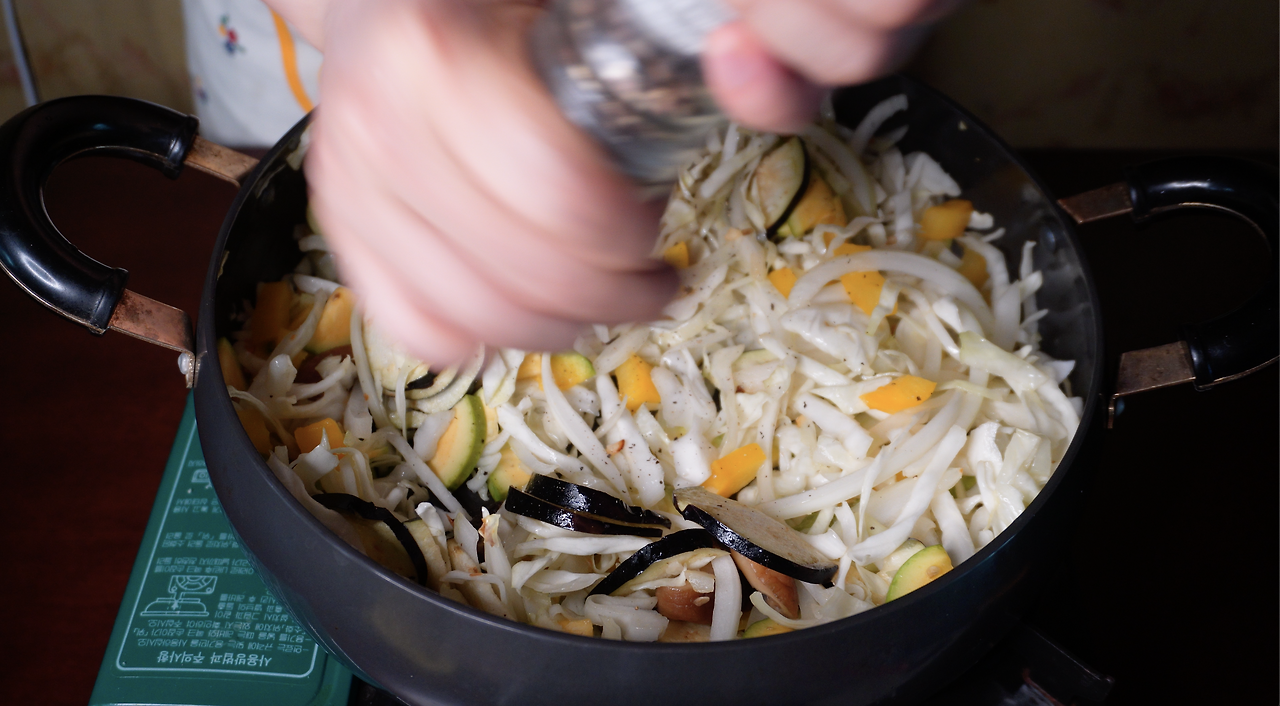 중간에 소금, 후추로 간을 살짝 해 줄게요.