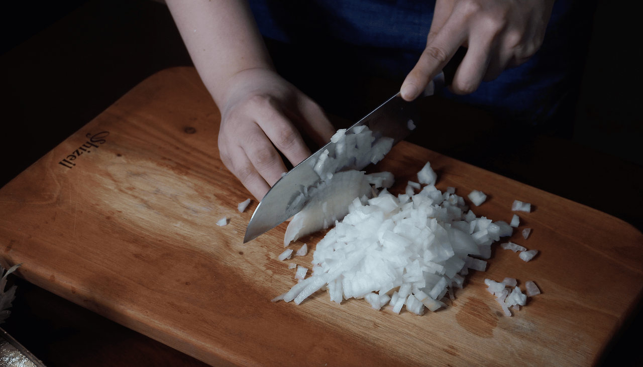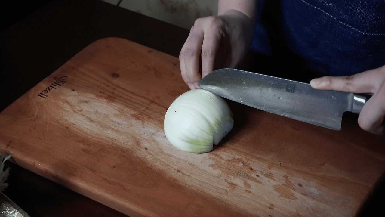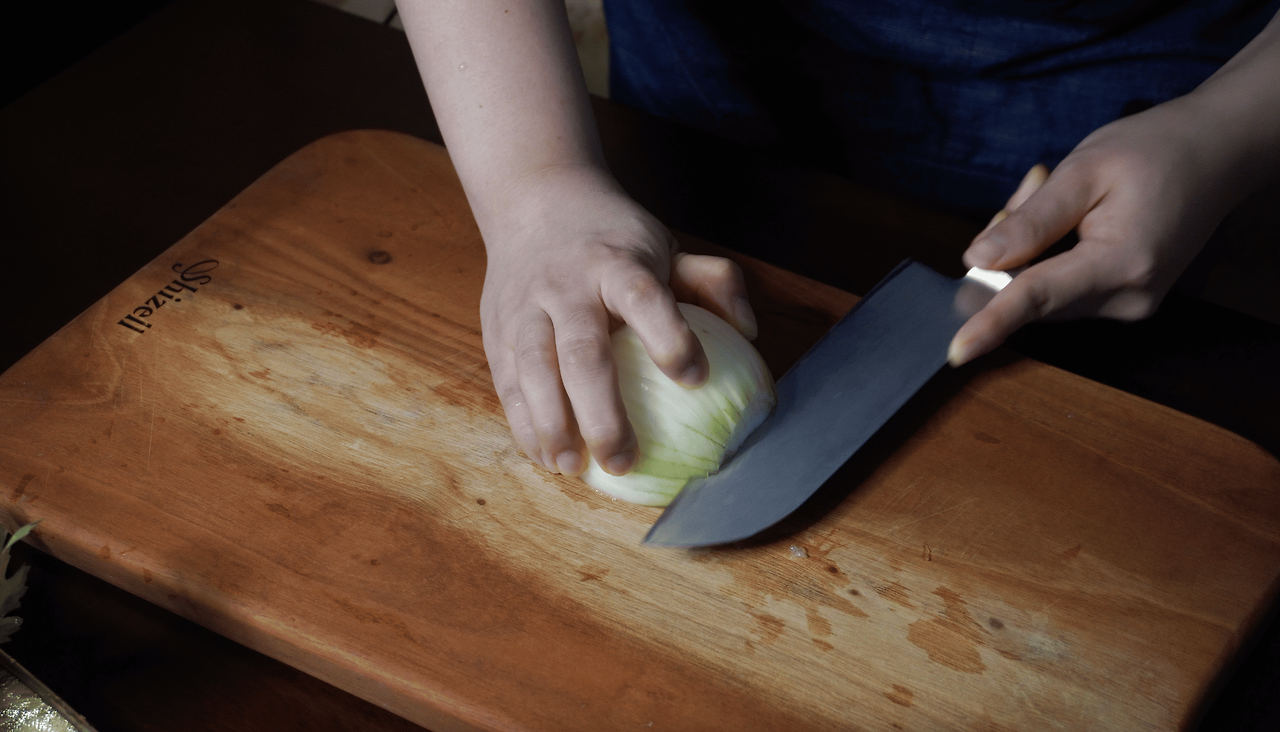 마지막으로 옆에서 잘라주면 곱게 다져진 양파가 나와요.