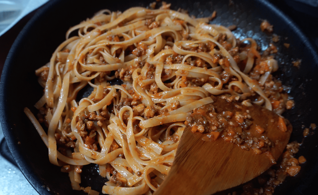 이번엔 파스타 면 삶아서 라구소스 넣고 살짝 볶아줄게요.