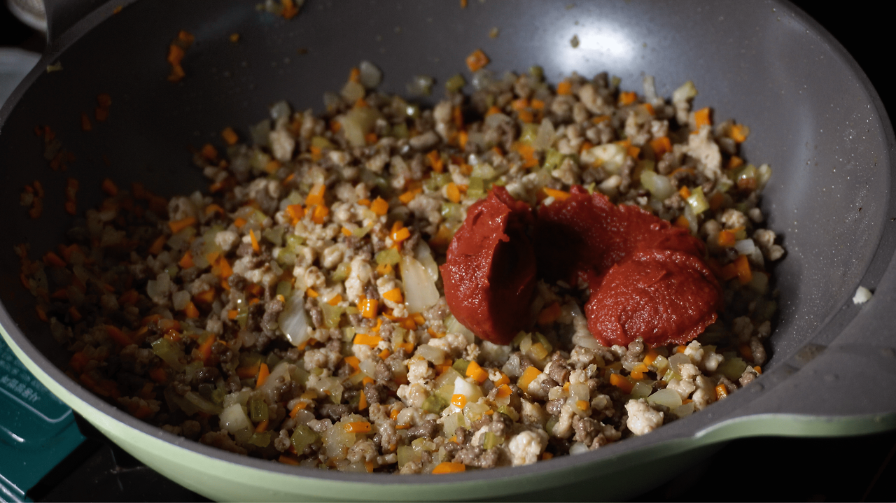 토마토 페이스트를 넣고 1~2분 볶아 산미를 부드럽게 만들어 줄게요.