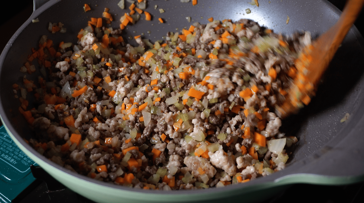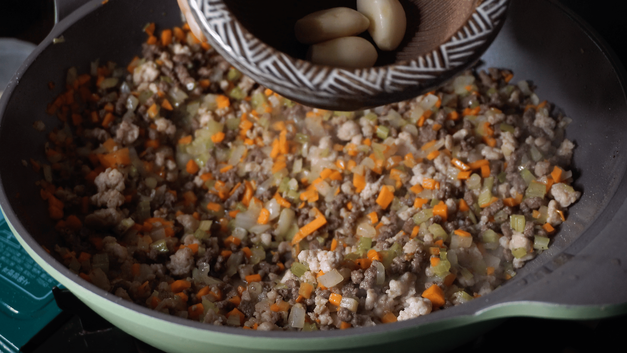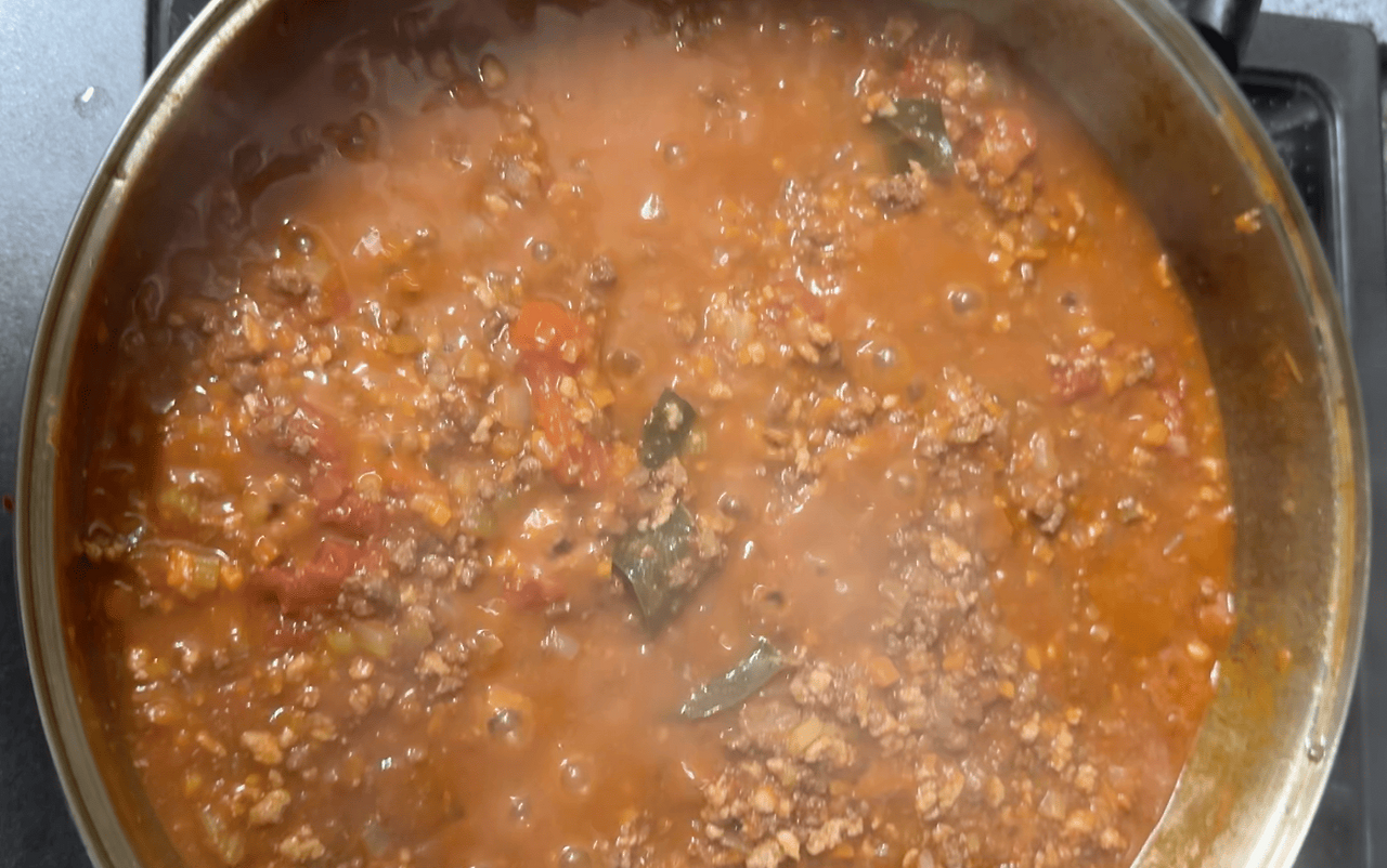 정통 라구에는 더 다양한 향신료가 들어가지만, 오늘은 가장 쉽게 구할 수 있는 월계수 잎만 넣었습니다.