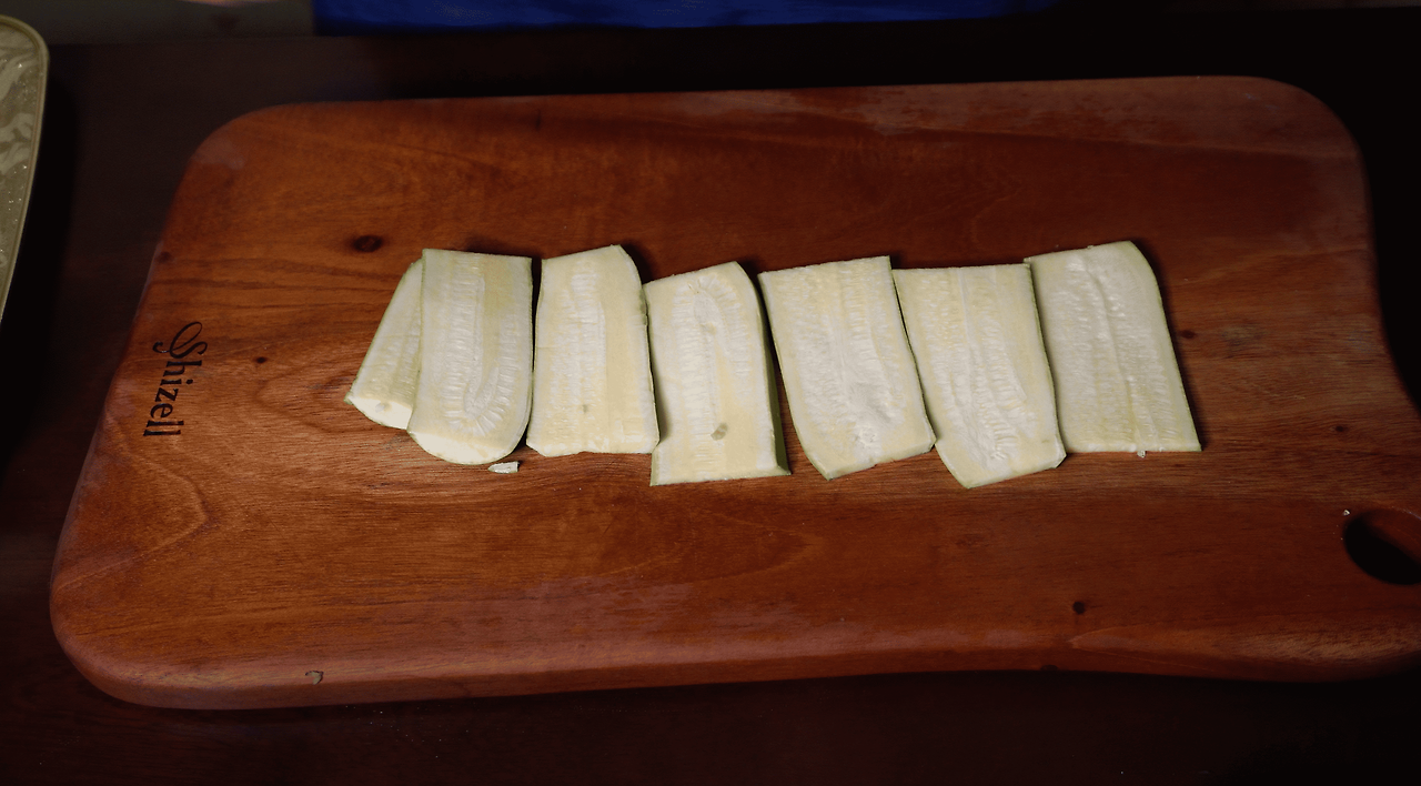 애호박도 가지와 비슷한 크기로 썰어줄게요.