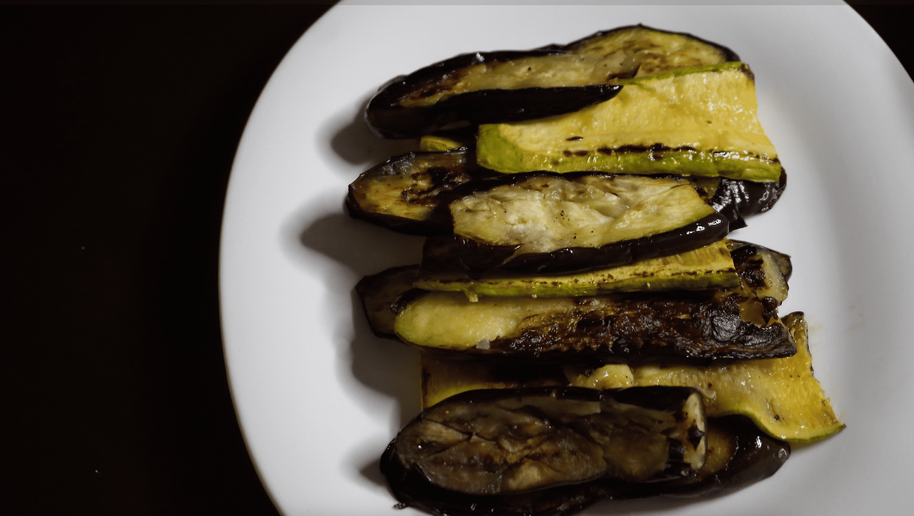 팬에 가지와 애호박을 노릇하게 구워줍니다.