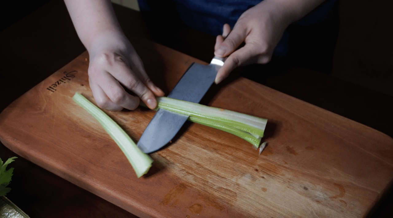 갈라놓은 샐러리를 채 썬 뒤, 잘게 다져줄게요.