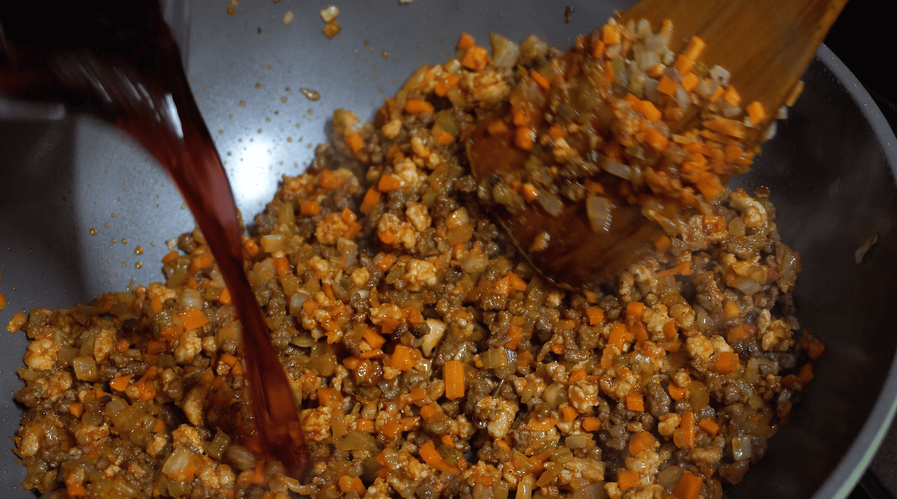 따라서 고기를 따로 볶아 풍미를 최대한 끌어올린 뒤, 잠시 덜어두었다가 채소를 볶을 때 다시 넣어줍니다.